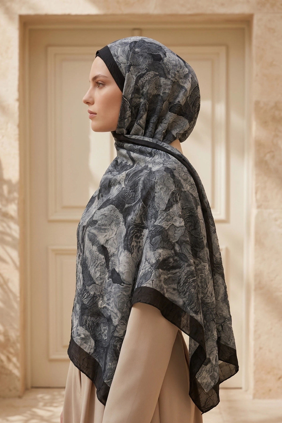 Kırışık (kraş) dokusu sayesinde ütü gerektirmeyen şal olarak pratik kullanım sağlar. Akışkan formu ve yumuşak dokusu ile kolay şekil alır, gün boyu rahat kullanım sunar. Özellikle günlük kombinler ve özel gün şal modelleri arasında şıklığıyla öne çıkar.