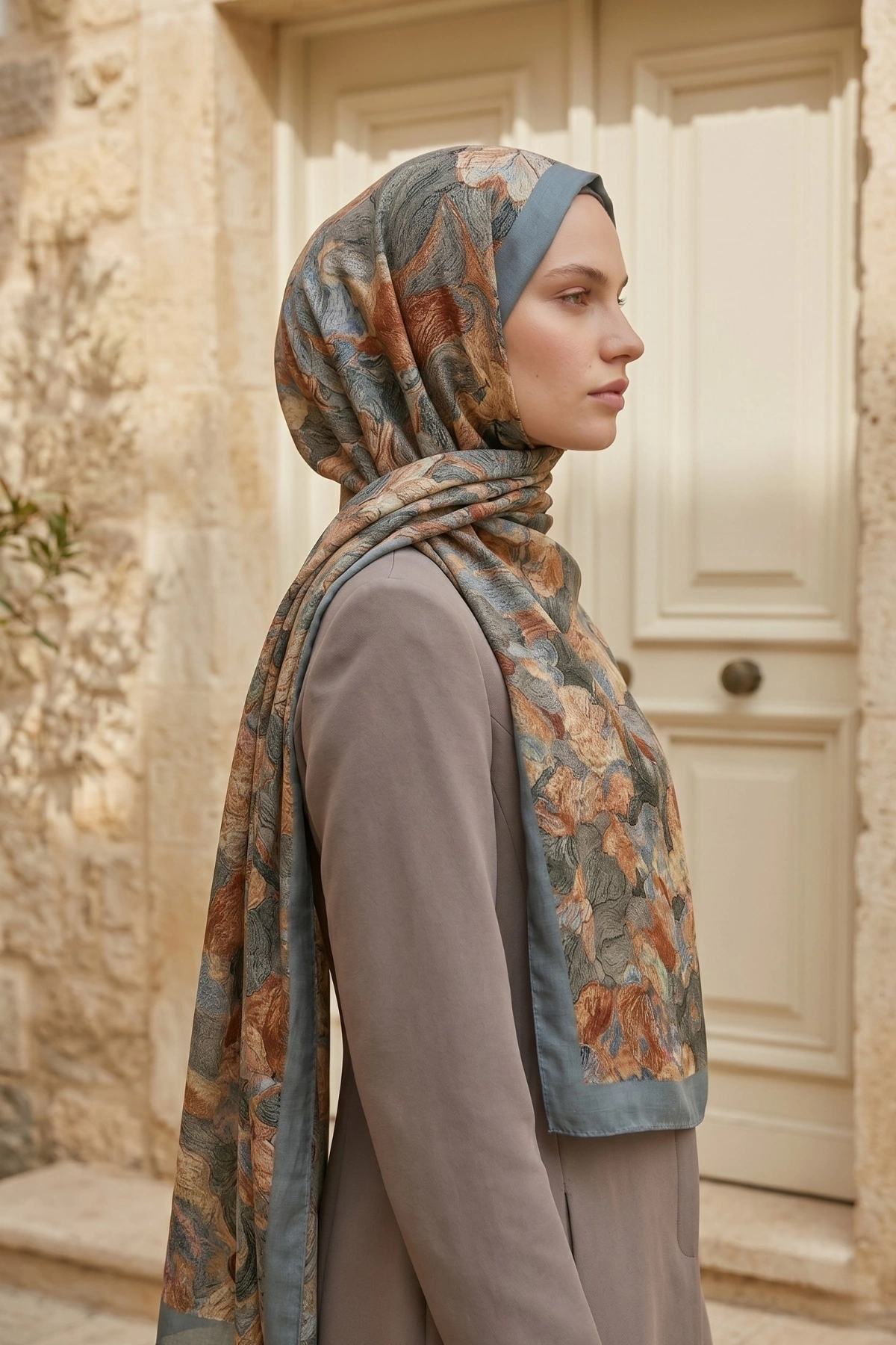 Canlı renk geçişleri ve sanatsal gül desenleri ile dikkat çeken bu desenli bambu şal, modern ve zarif görünümüyle stilinizi tamamlar. Hem günlük kullanımda hem de özel davetlerde tercih edebileceğiniz çok yönlü bir aksesuardır.