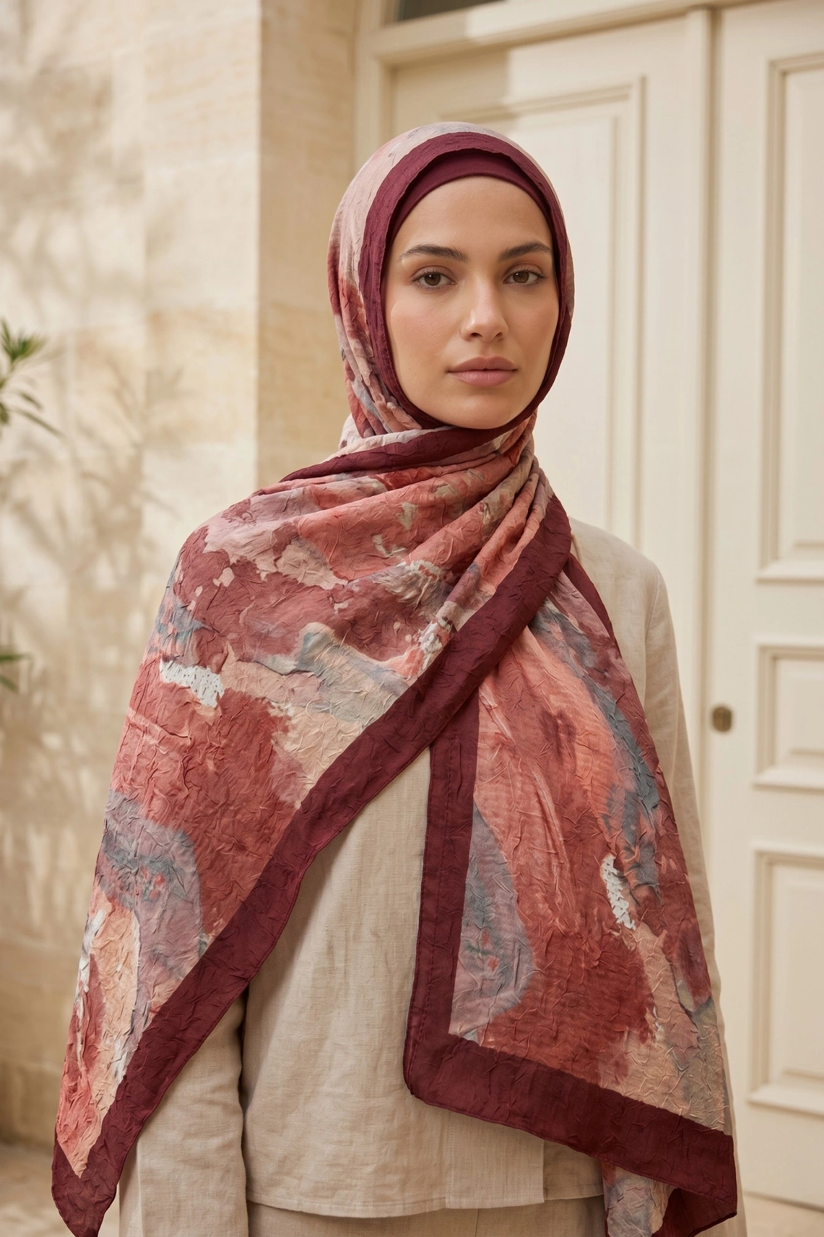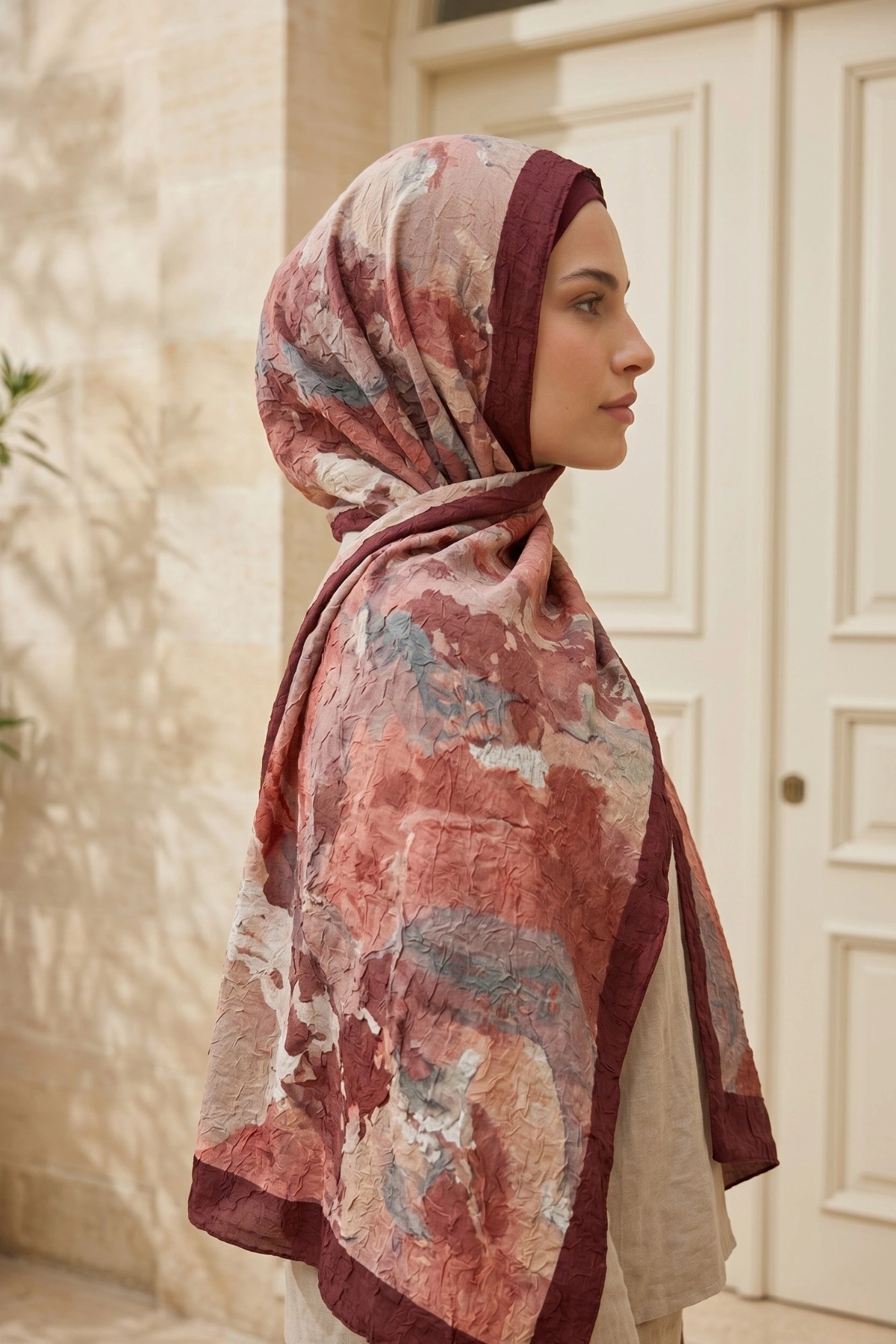Kırışık (kraş) dokusu sayesinde ütü gerektirmeyen şal olarak pratik kullanım sağlar. Akışkan formu ve yumuşak dokusu ile kolay şekil alır, gün boyu rahat kullanım sunar. Özellikle günlük kombinler ve özel gün şal modelleri arasında şıklığıyla öne çıkar.