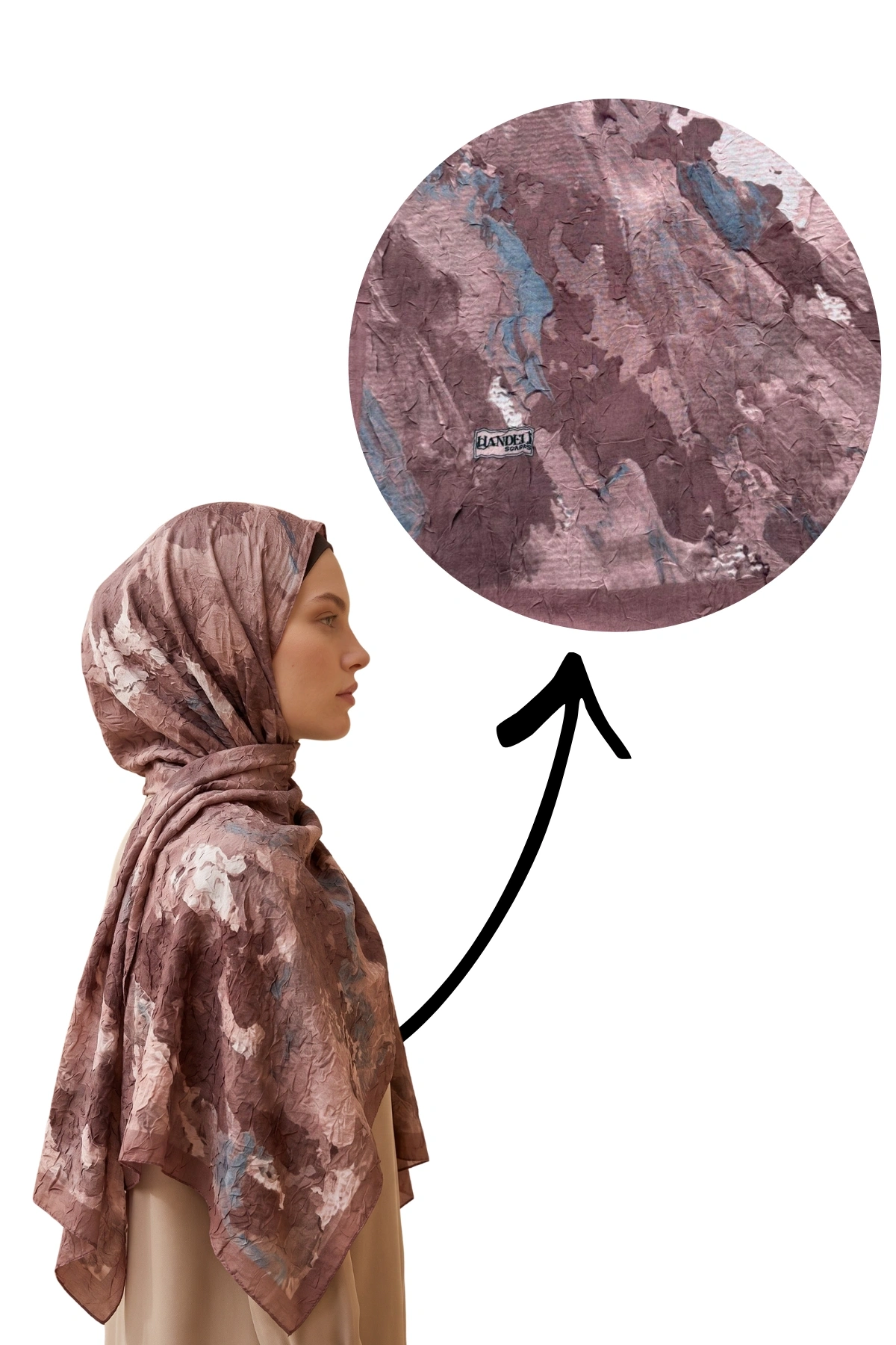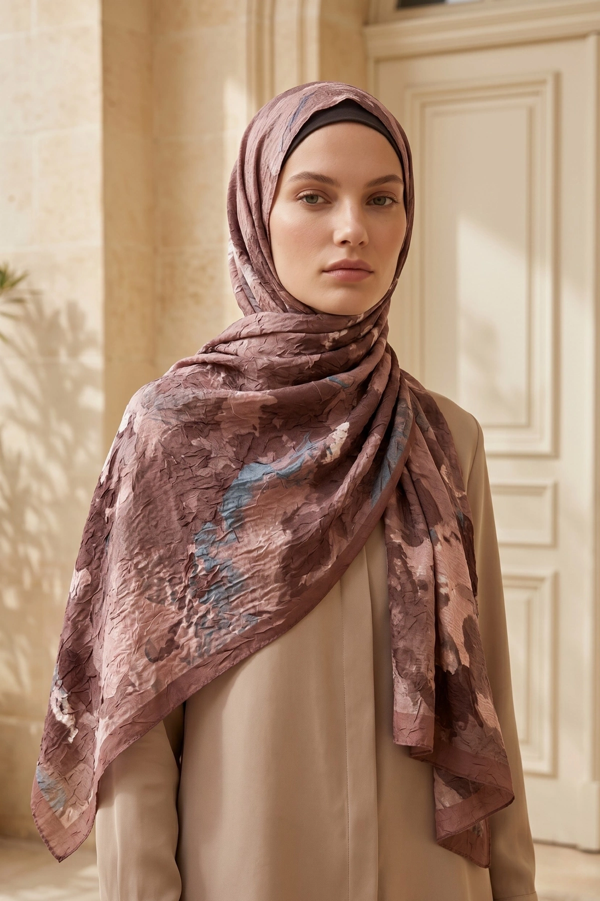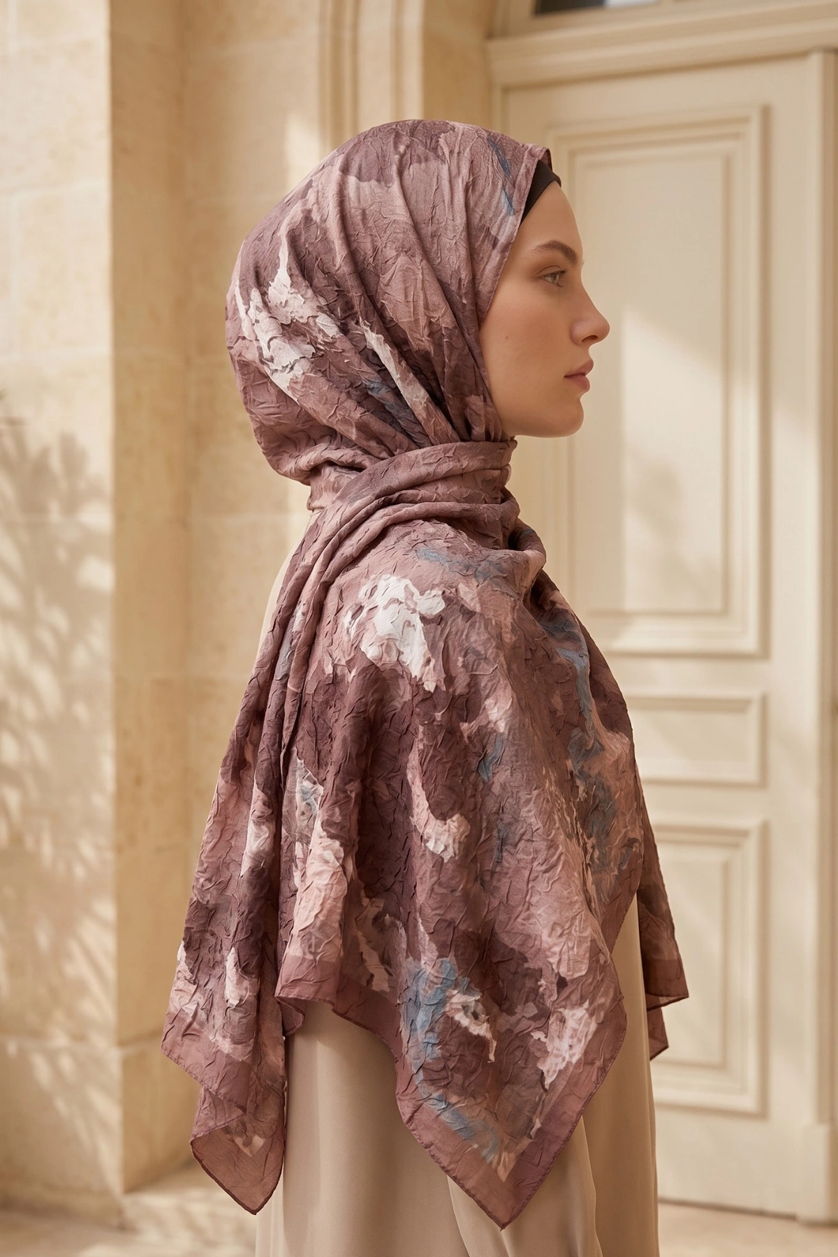 Kırışık (kraş) dokusu sayesinde ütü gerektirmeyen şal olarak pratik kullanım sağlar. Akışkan formu ve yumuşak dokusu ile kolay şekil alır, gün boyu rahat kullanım sunar. Özellikle günlük kombinler ve özel gün şal modelleri arasında şıklığıyla öne çıkar.