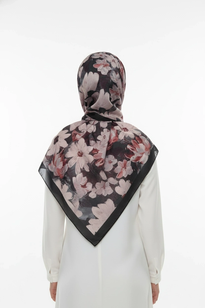 Flora Model Retro Desen Şal - Siyah Bordo