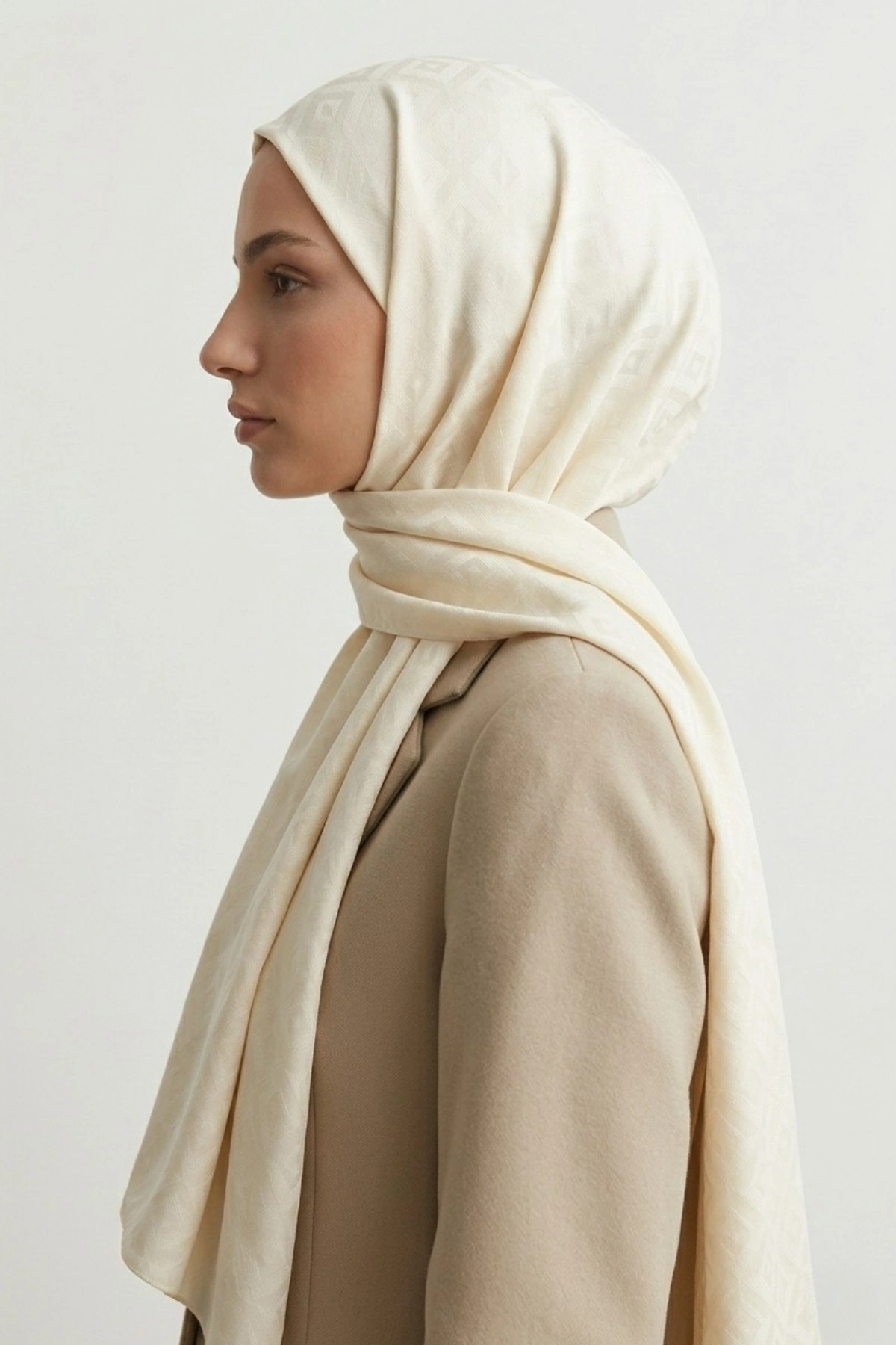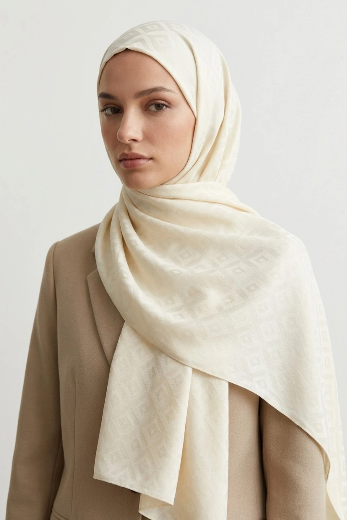 Organik İpek Pamuk Jakar Şal Karo Desen - 1