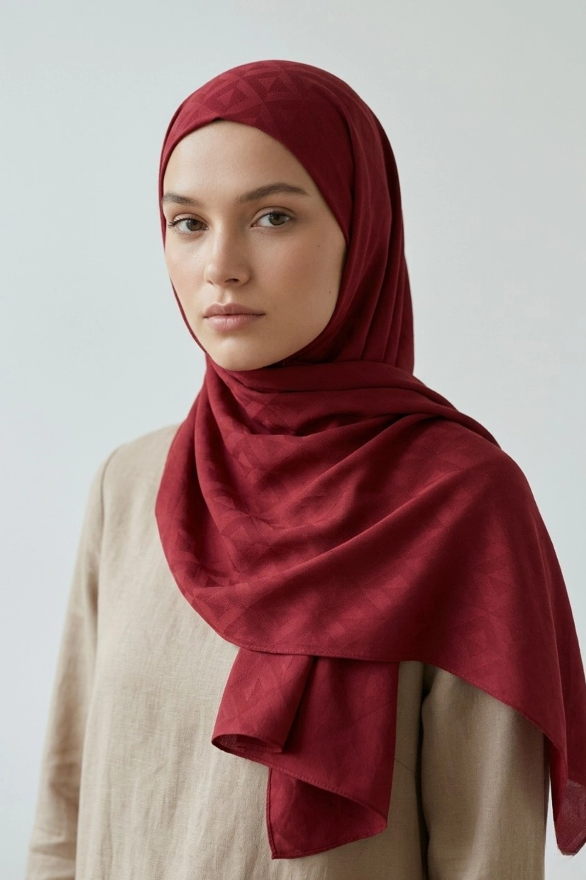 Organik İpek Pamuk Jakar Şal Karo Desen - 4