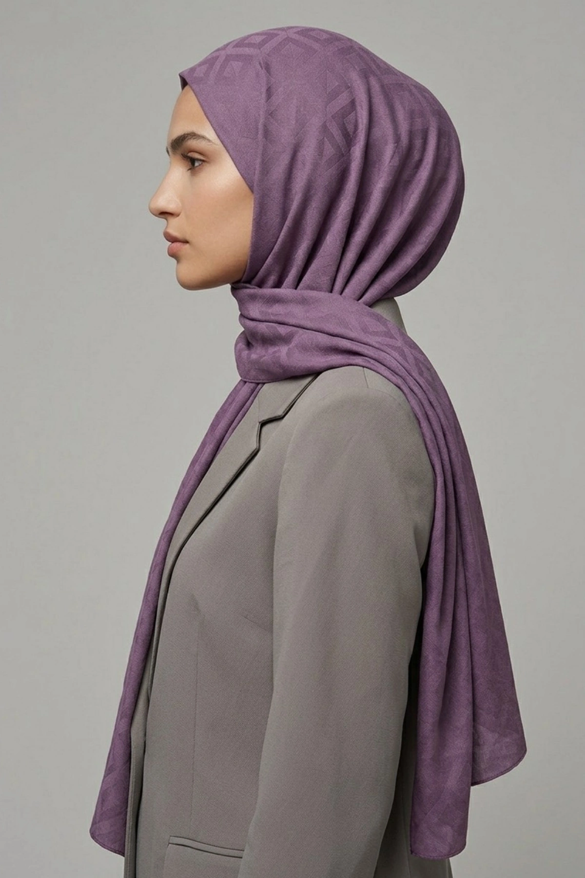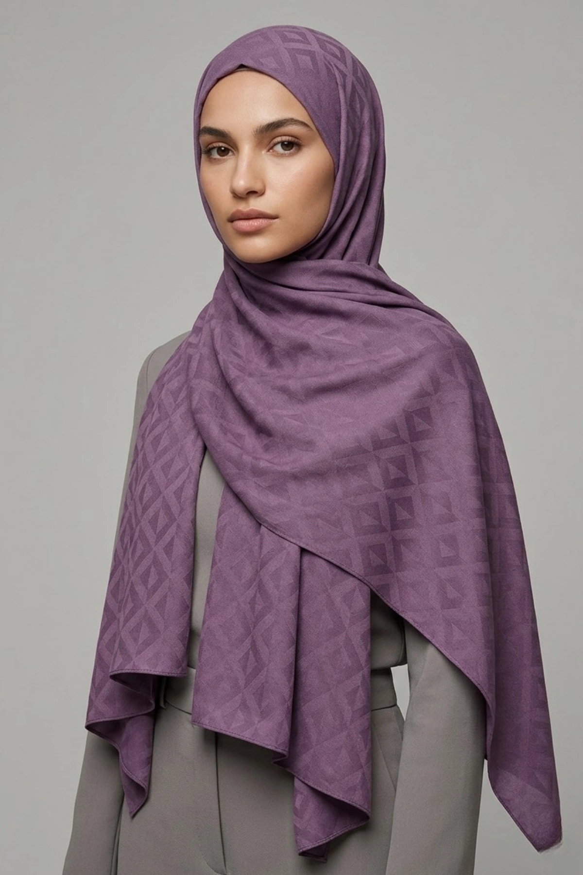 Organik İpek Pamuk Jakar Şal Karo Desen - 6
